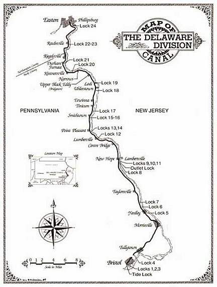 Topographical maps of the Delaware Canal are available from from the United States Geological Survey (USGS) in Denver, Colorado 80225 or Reston, Virginia 22092. Ask for the following map numbers: