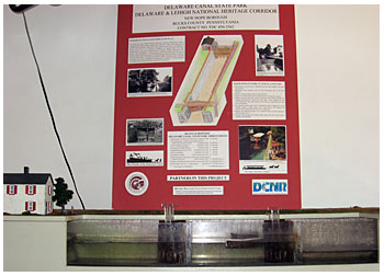 These students were guided by teacher Ray Kaminski in designing and constructing the 6-foot-long model, complete with re-circulating water. Bonnie Tobin, Delaware Canal State Park educator, advised the class, and the Bureau of State Parks assisted with the cost of the model.