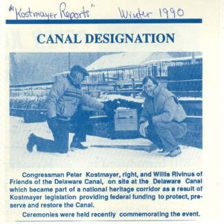 Virginia Forrest was there and became our first official member. Jim Greenwood also came, and was the first of many subsequent public officials to offer help to the ailing canal. Also in attendance was poet/sculptor Raymond Granville Barger, who read a poem dedicated to the Friends of the Delaware Canal. Congressman Peter Kostmayer came, and so did Superintendent Giza and Lance Metz, the Easton Canal Museum’s historian.