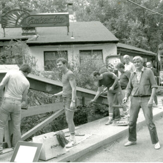 Next, we planned a meeting of the new group, which we called the Friends of the Delaware Canal. I called Paul Licitra, who owned the historic Towpath House Restaurant in New Hope, telling him we needed a place to meet. He let us hold our first meeting there on a Tuesday night in October, 1982 when he was not open to the public. To commemorate the event, George Schweickhardt, owner of the mule-drawn Barge Company in New Hope, offered a boat to carry people to the restaurant. Despite a heavy rain, 30 people showed up.