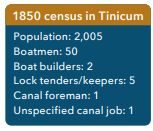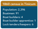 Other township residents also found the canal a source of success. By 1860 the number of Tinicum boatmen and boat builders had nearly doubled. A total of 102 Tinicum residents worked directly on the canal with many others providing indirect services and labor. Canal jobs remained the third most popular occupation category.