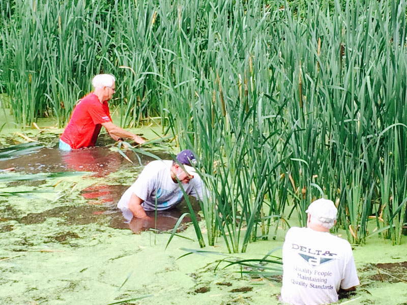 The Friends’ Canal Action Team (CAT) has been tackling a wide variety of projects since it was formed in the winter of 2014. Everything from removing vegetation from stone walls to bridge painting to replacing interpretive signs to pulling out cattails is fair game.
